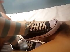 Kinky Aso Nozomi gives a hot footjob while masturbating 14:46