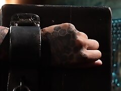 BDSM Ebony domina in latex stockings whipping sub asshole 5:00