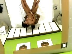 Suspension bondage lez MILF pussy tormented by lezdom Ebony 5:01